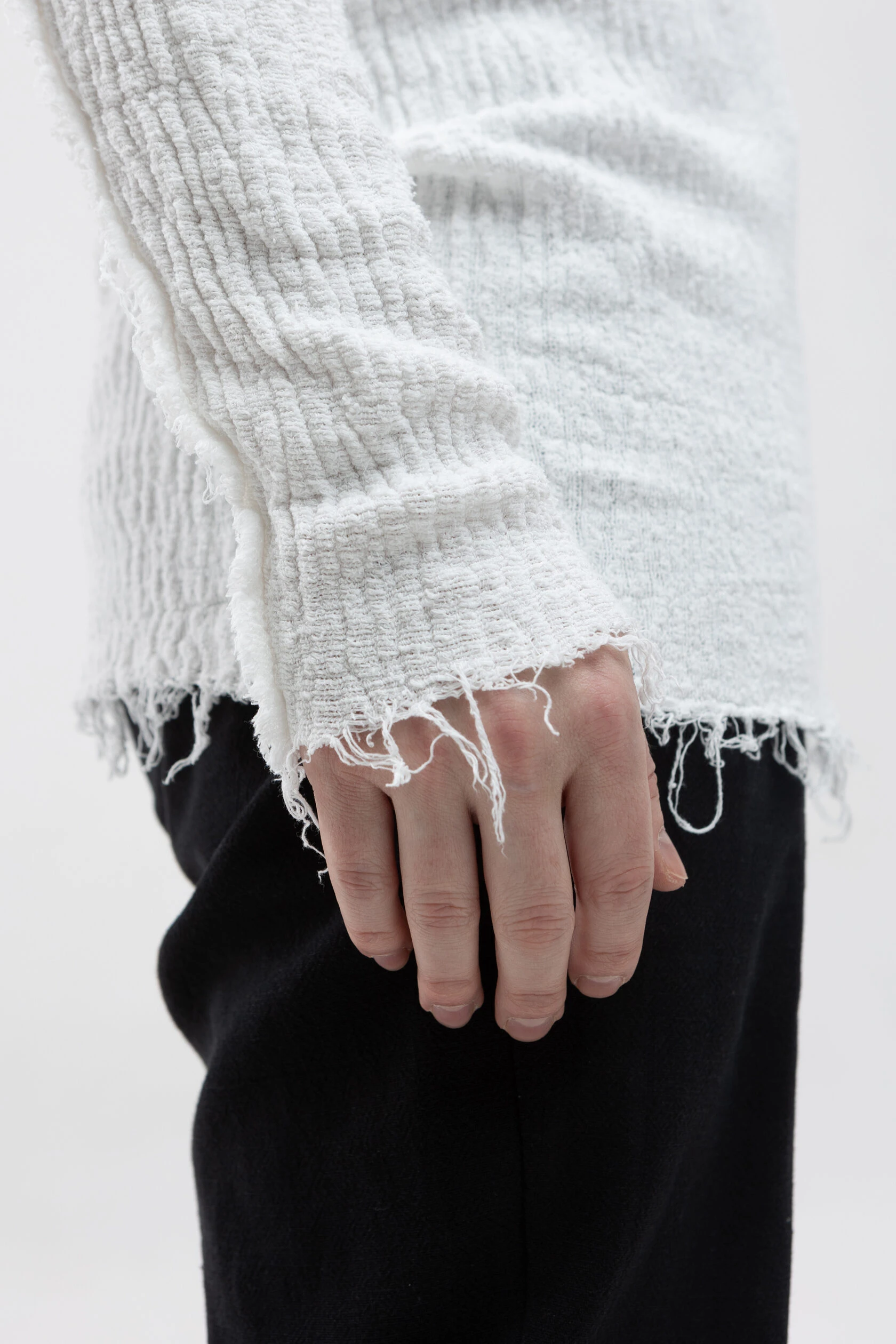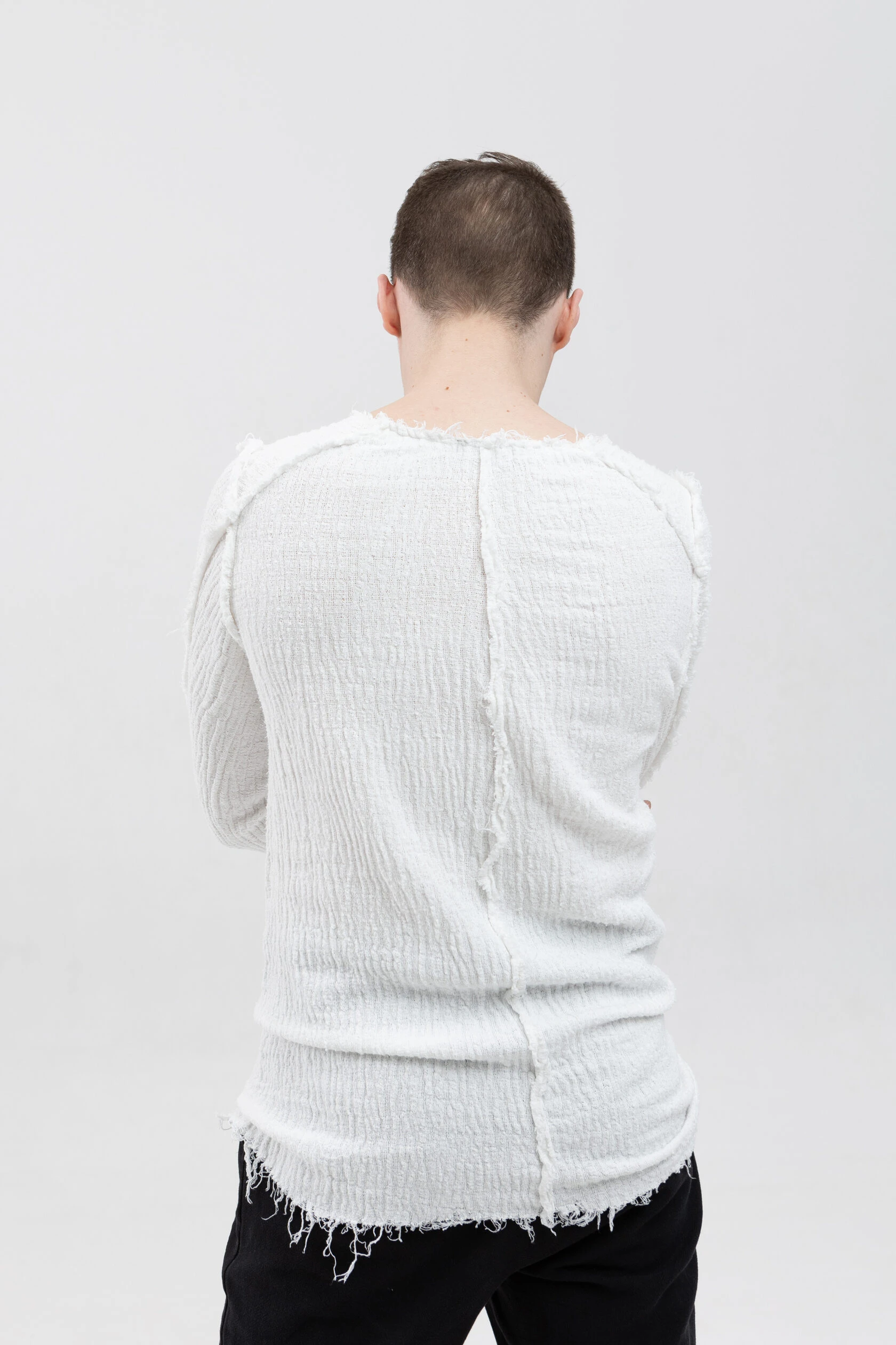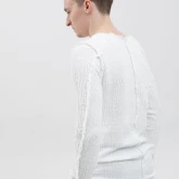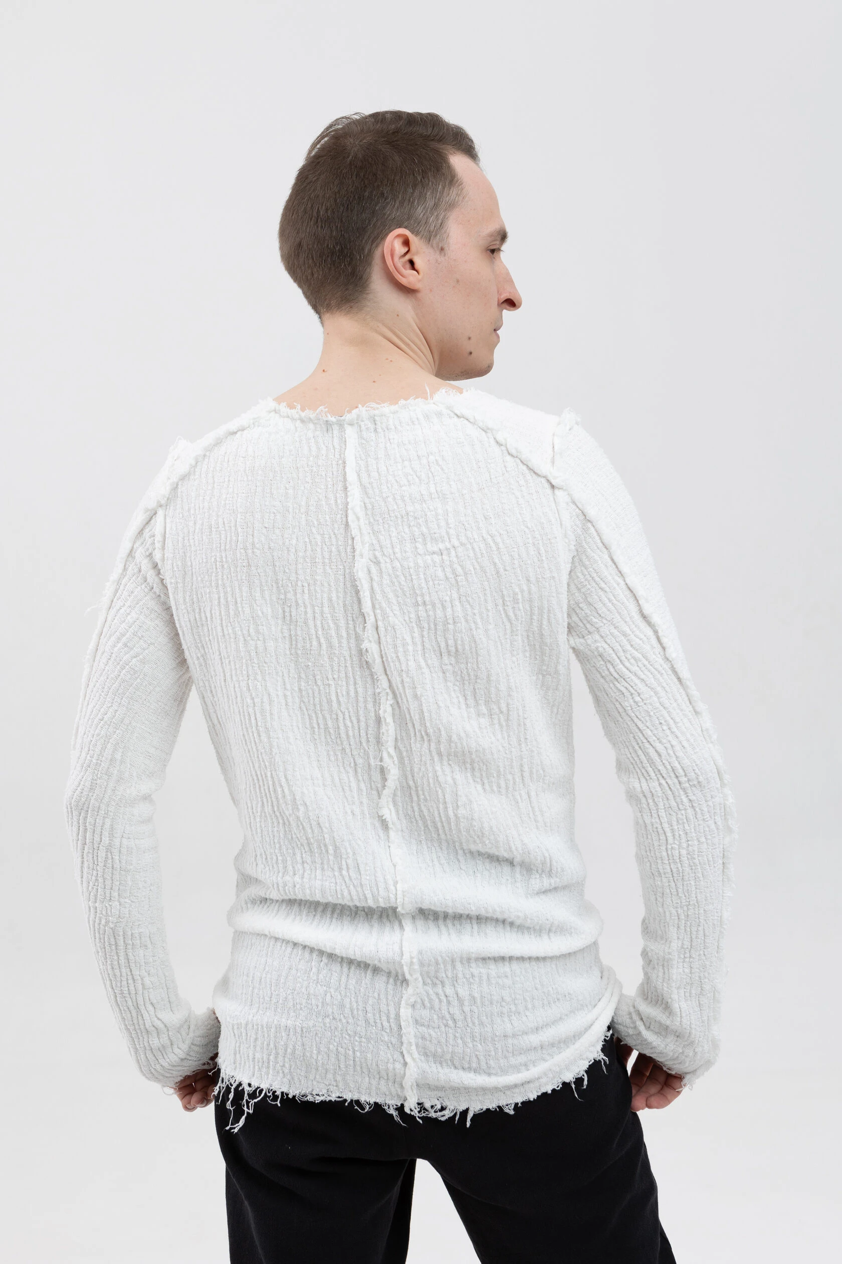 Белый цвет, плетёная фактура, минимум швов. Наденьте её с джинсами — и вы хиппи. С костюмом — и вы уже «креативный художник».
