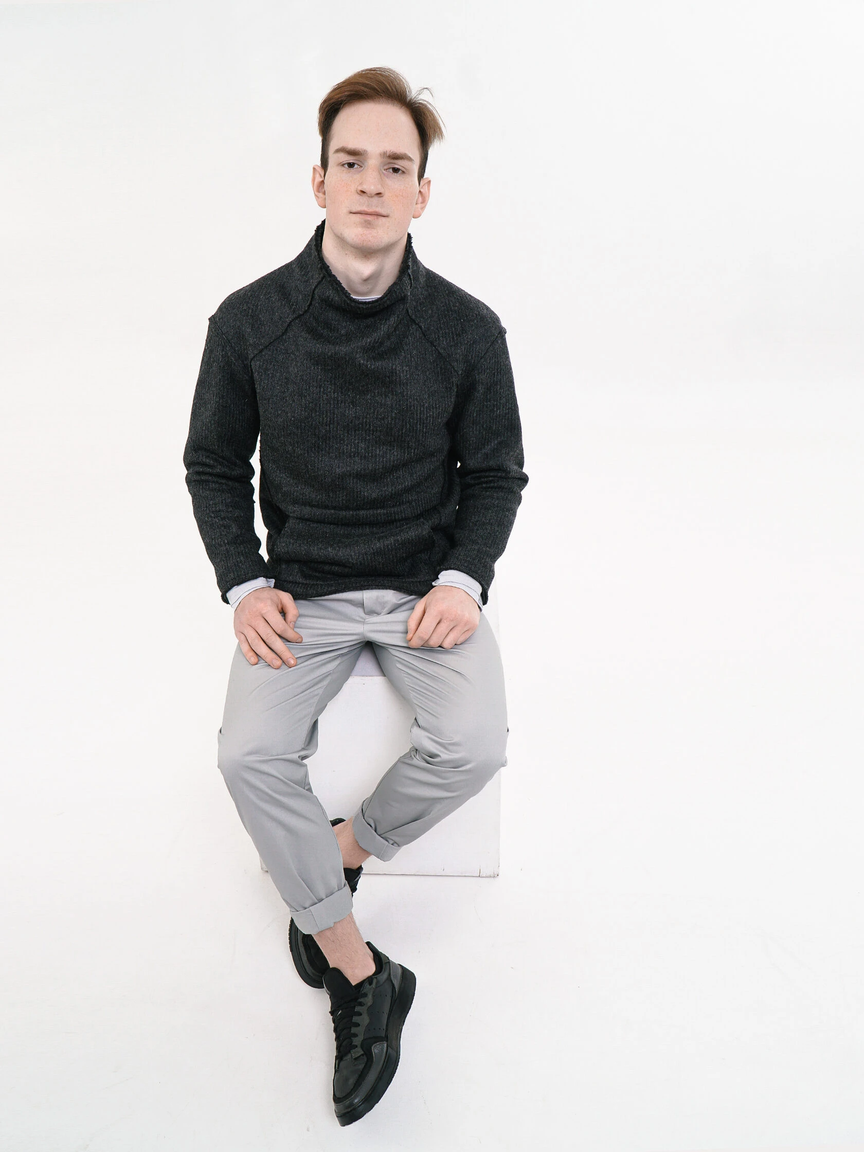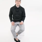 Силуэт свитера — перевёрнутая трапеция.