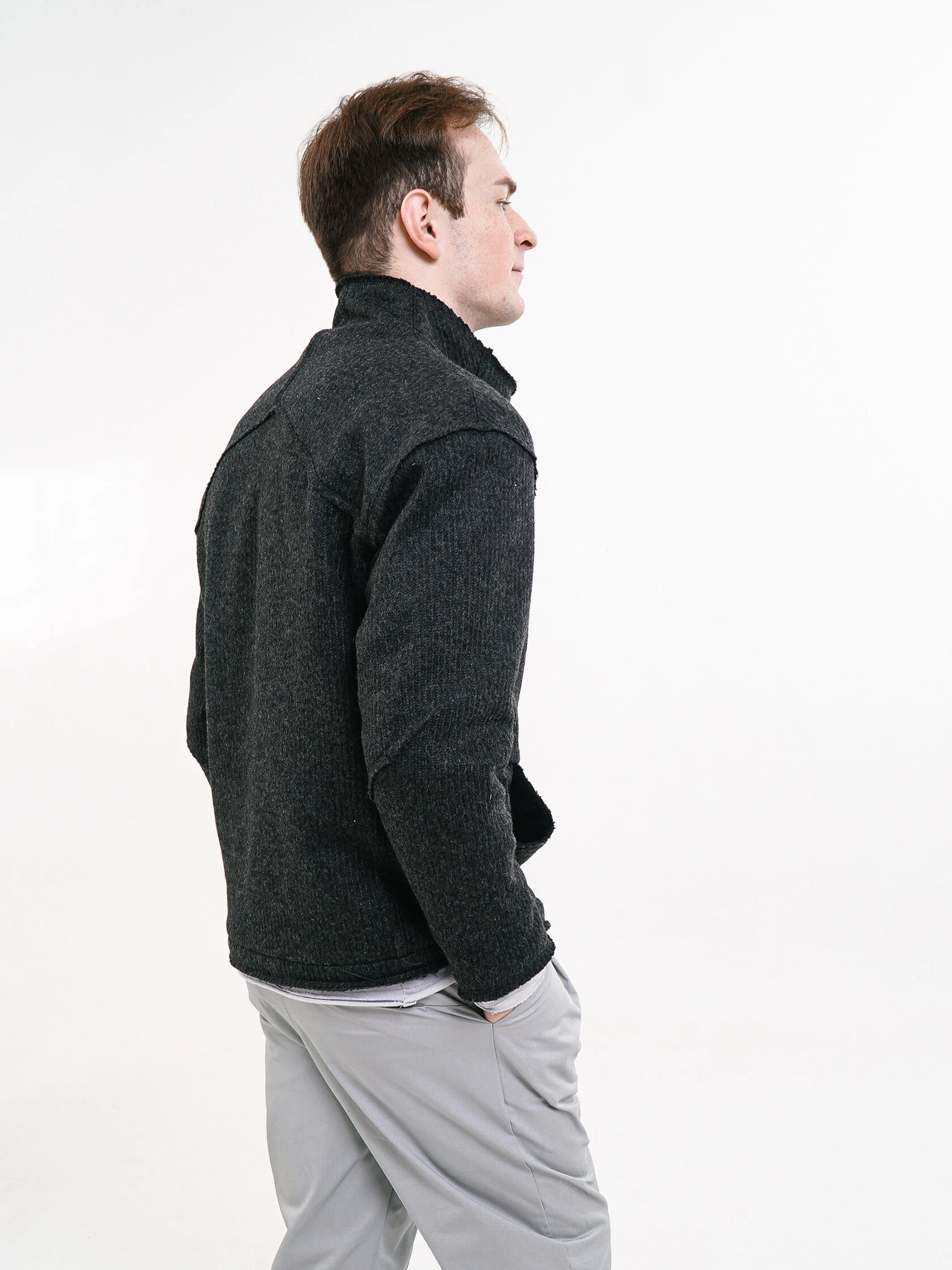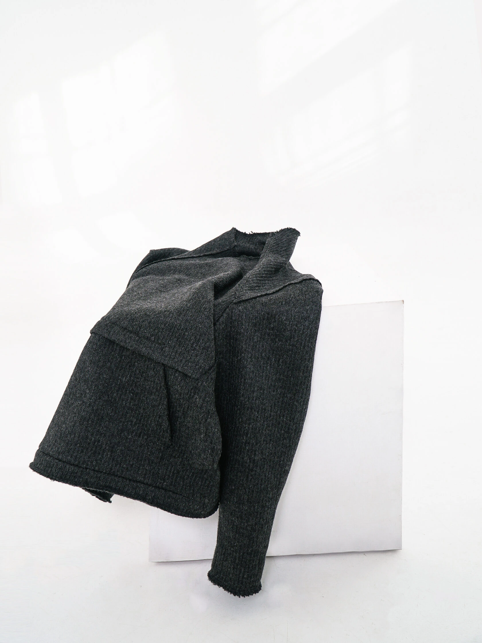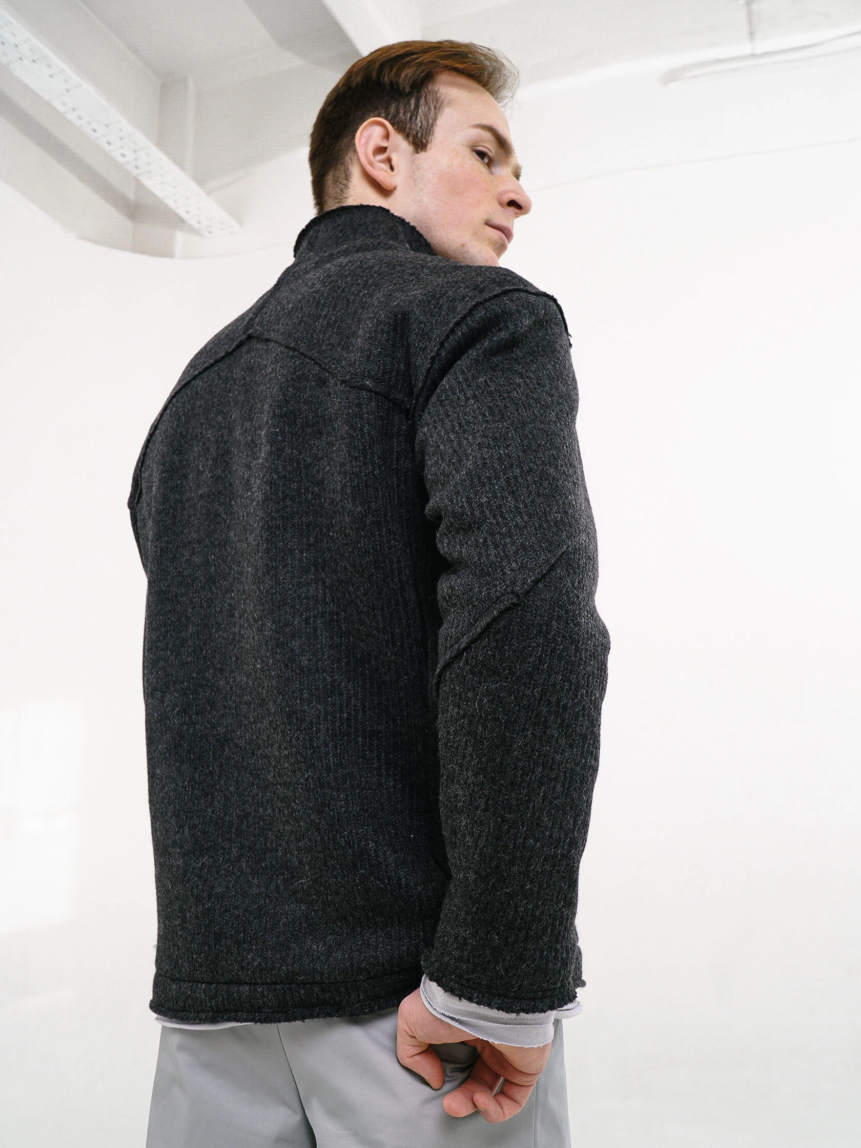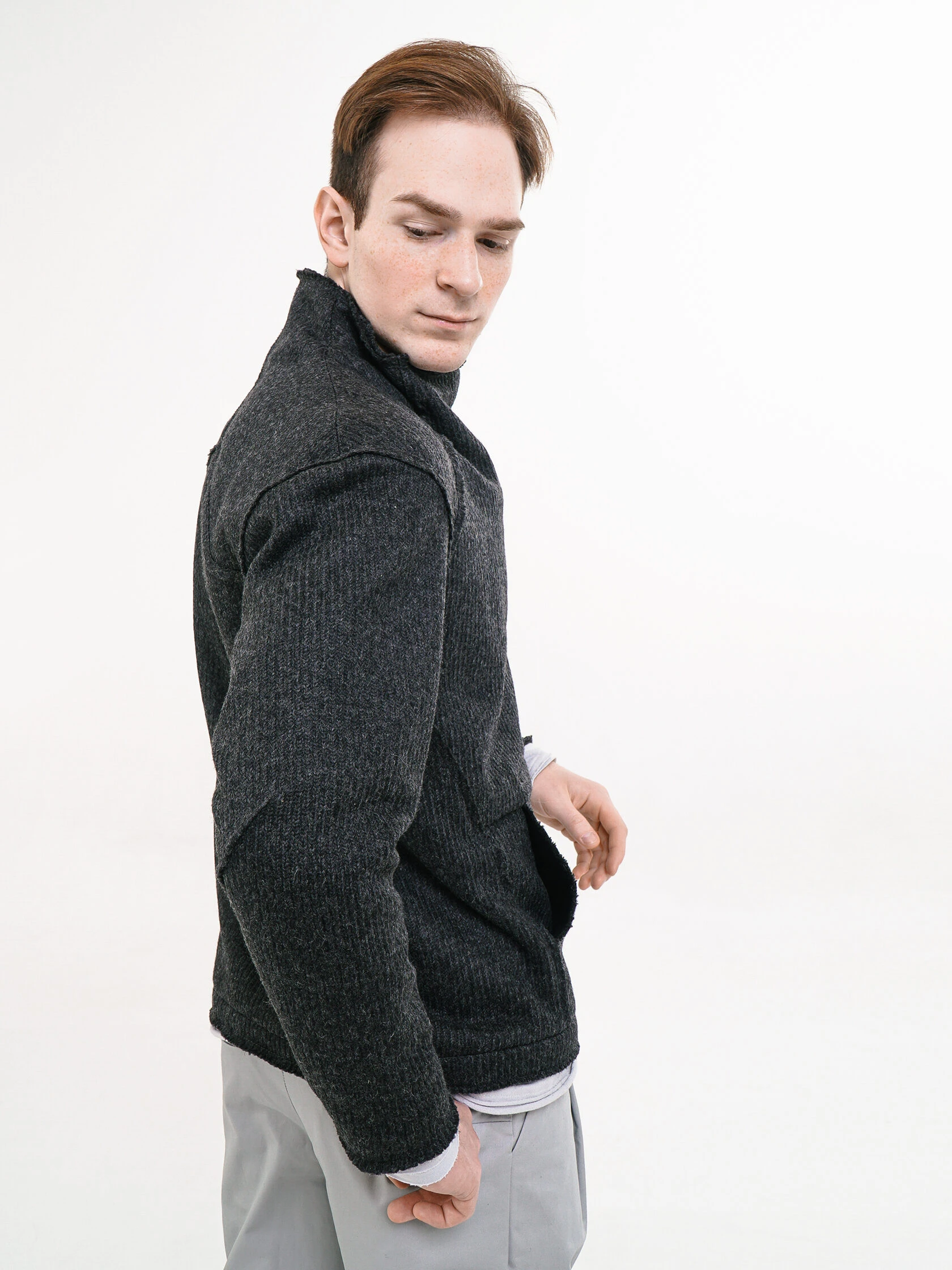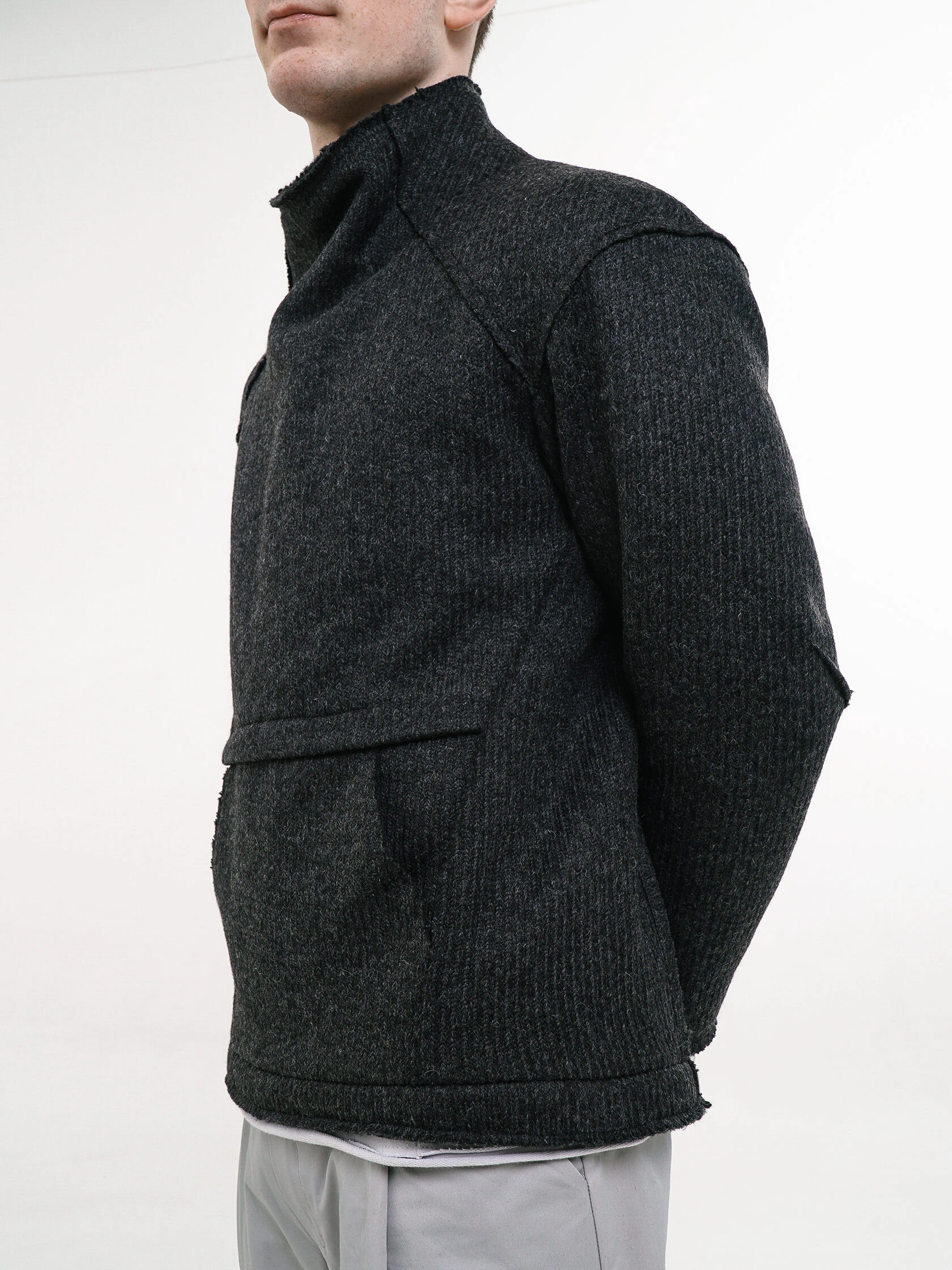 У свитера не все края с открытыми срезами, но те, что есть, первое время могут немного осыпаться.