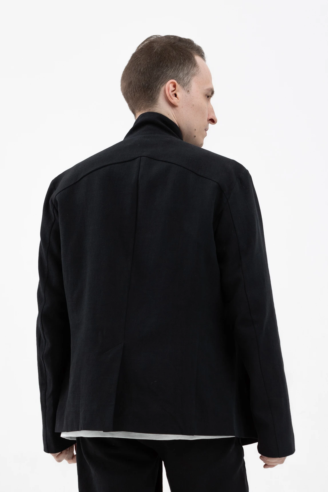 Жакет визуально прямой, но на деле слегка приталенный, чтобы не получился «шкаф».