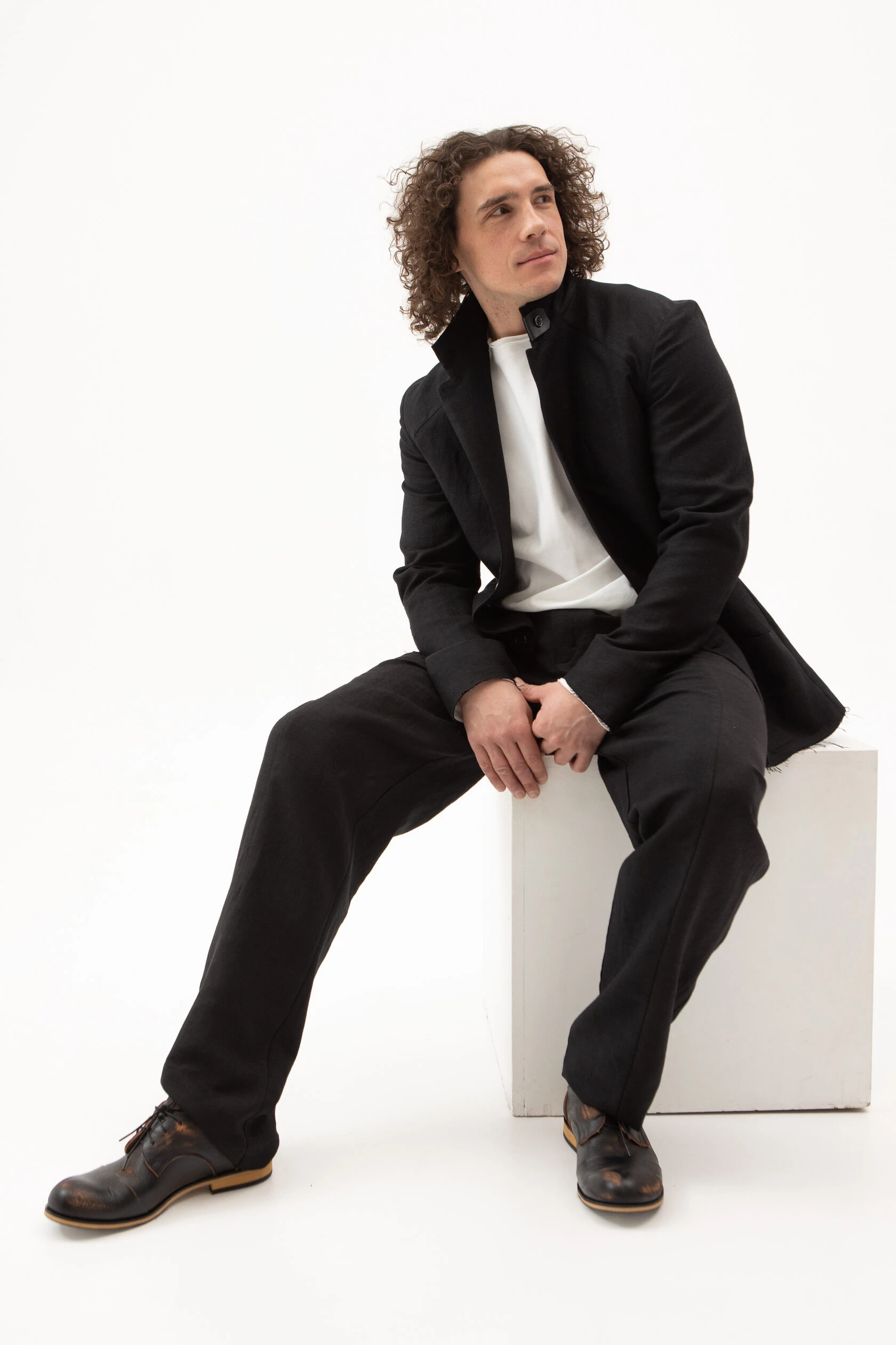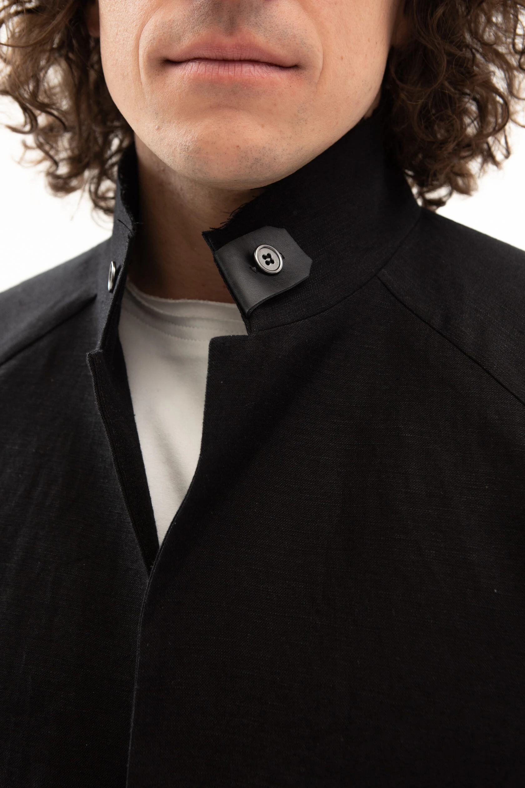 Спереди — два кармана в швах и один прорезной классический карман с листочкой — внутри.