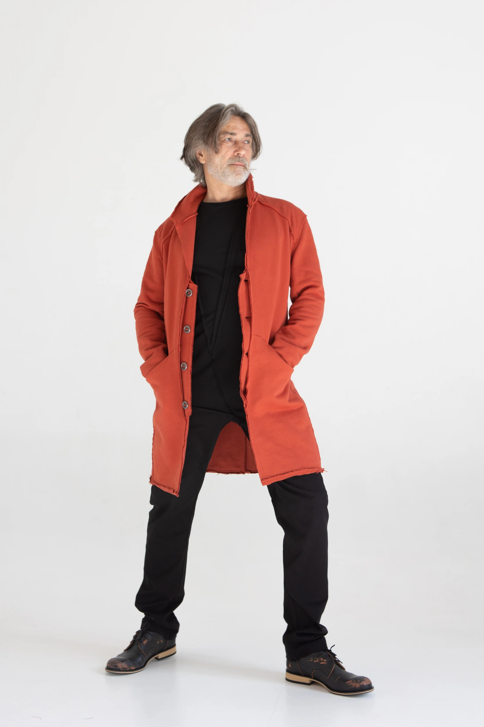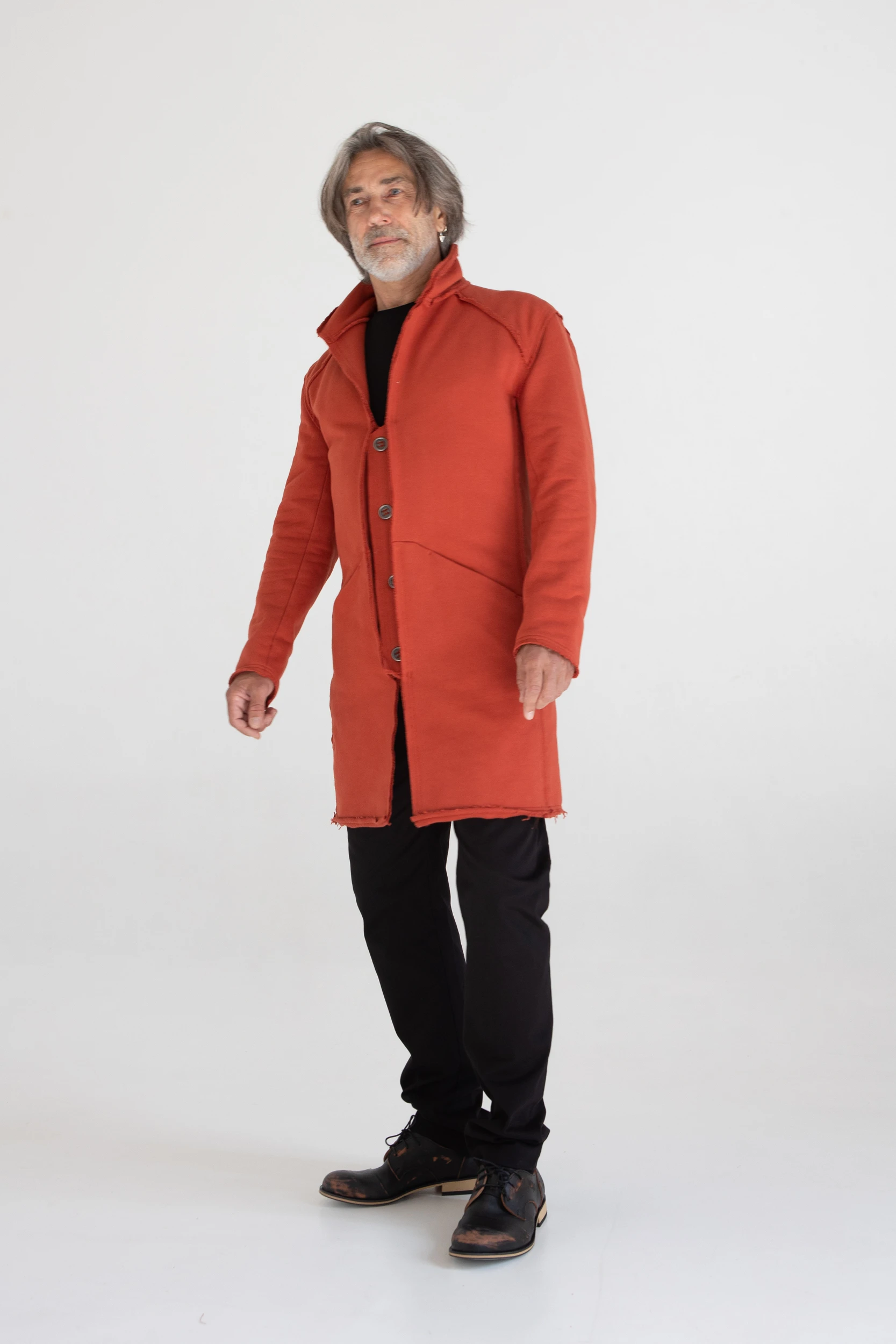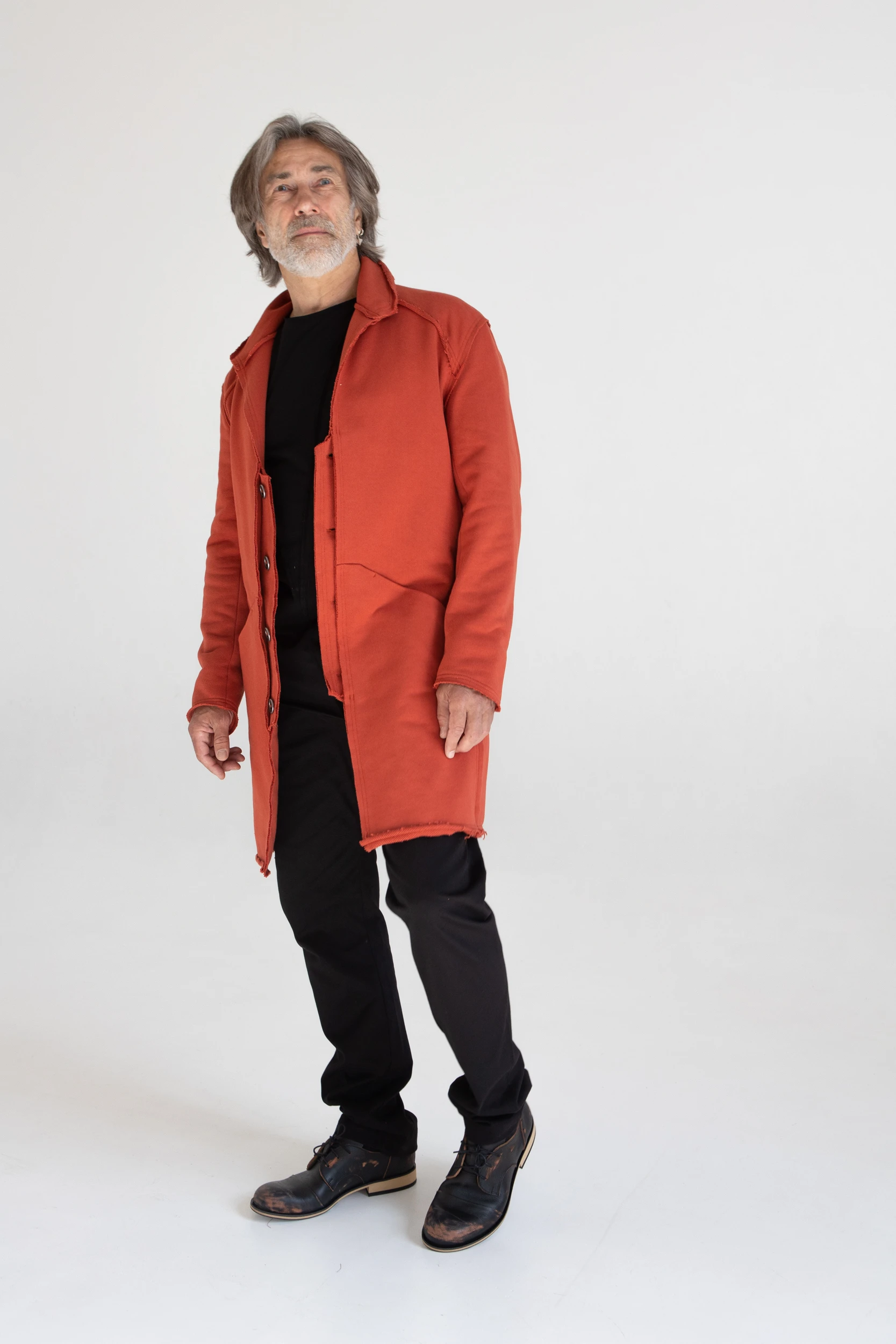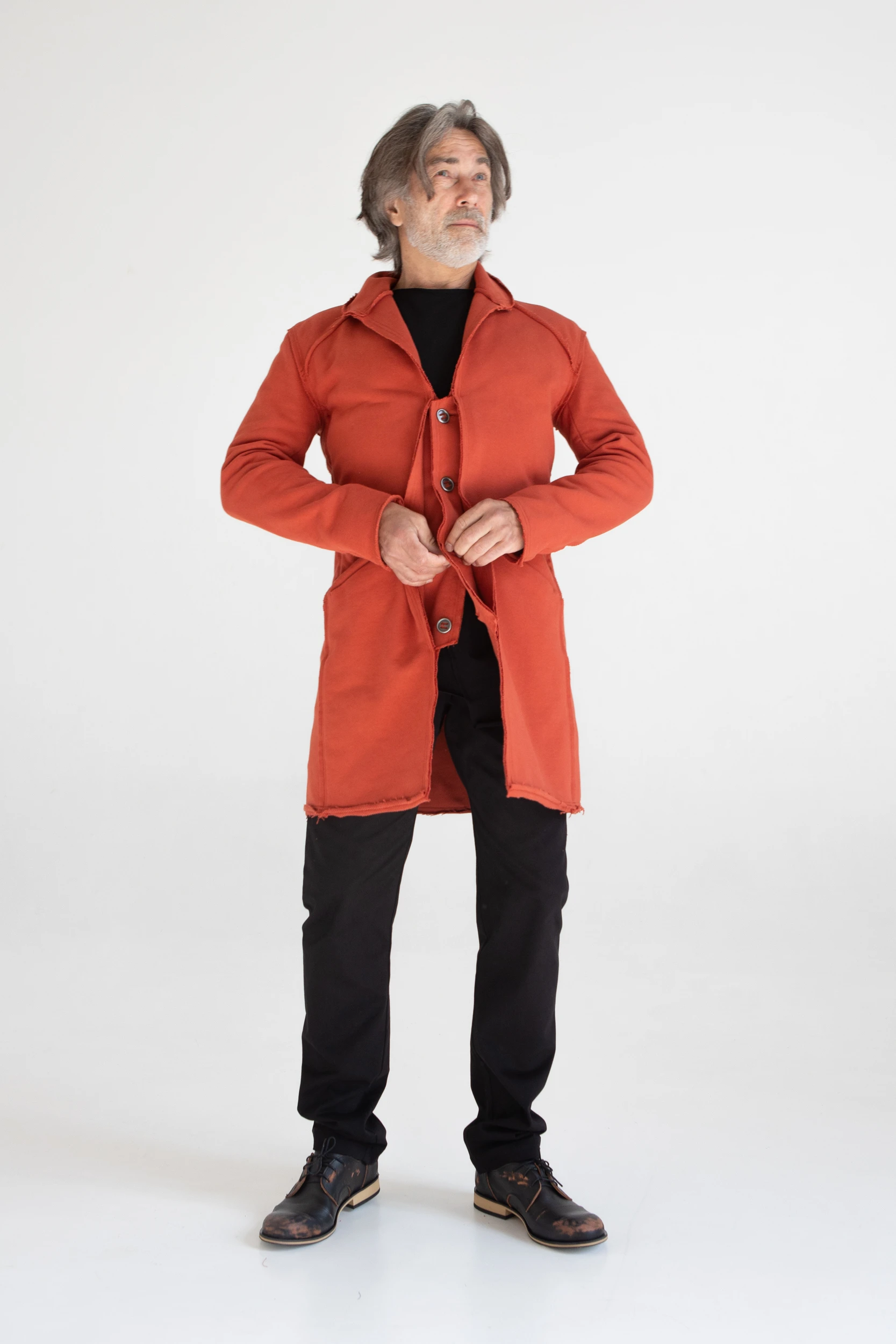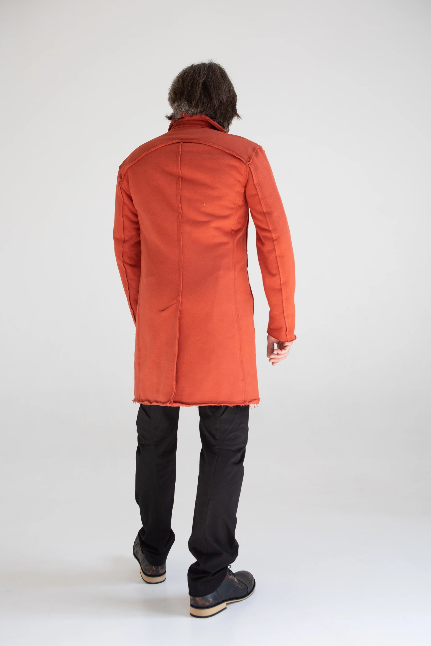 Сюртук — он же удлинённый жакет — сшит из очень плотного хлопкового трикотажа, который прослужит не один год.