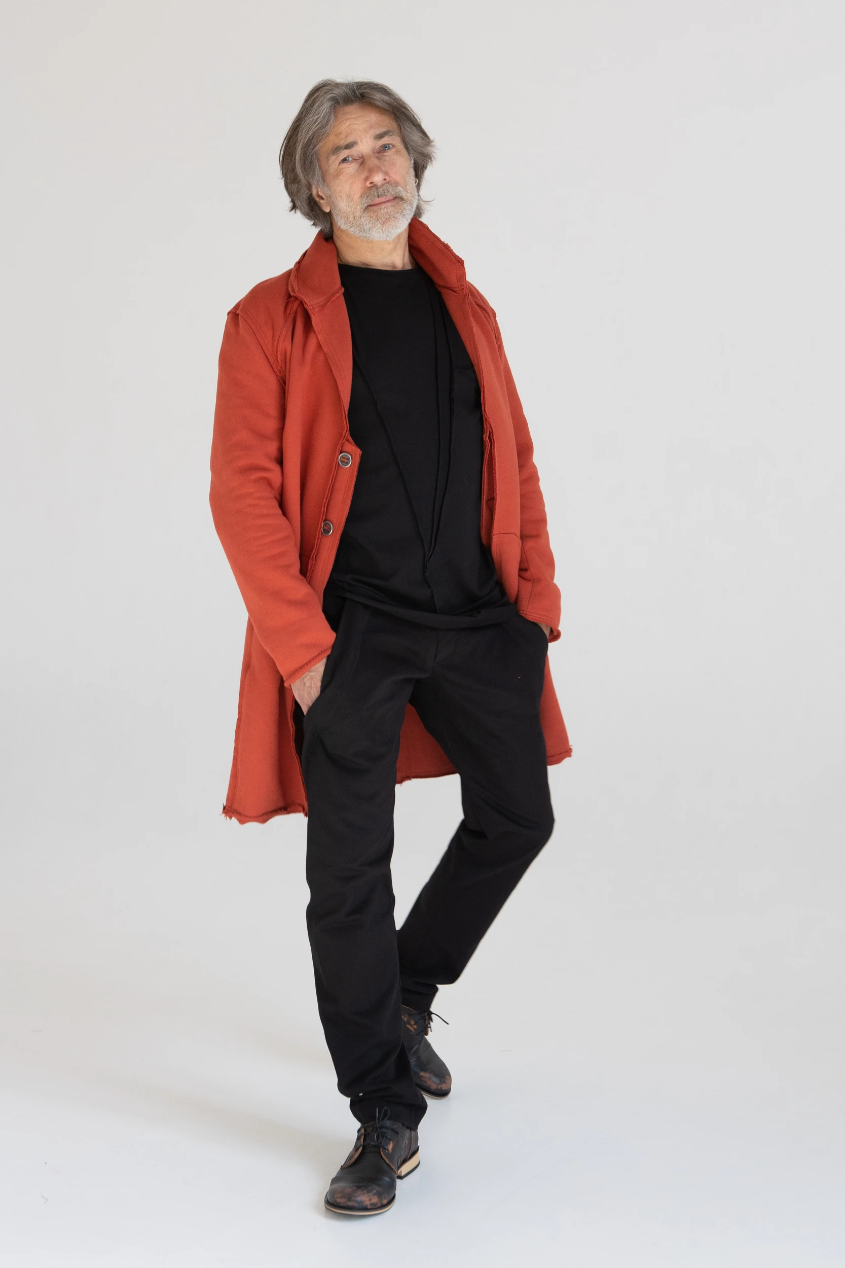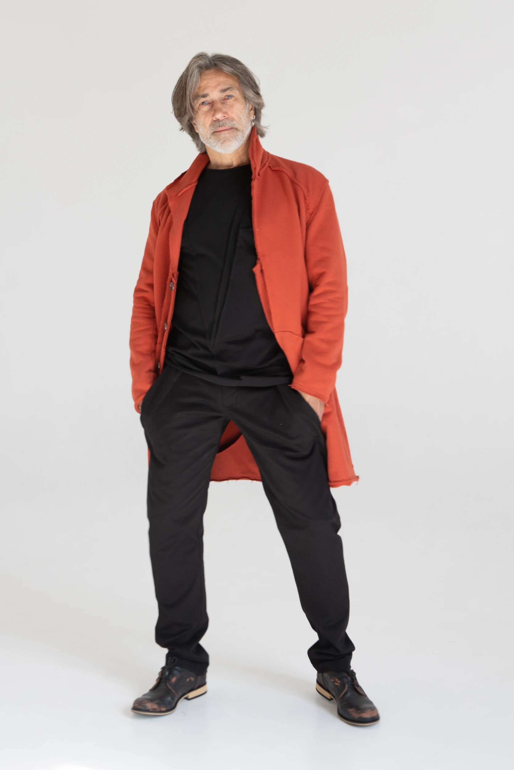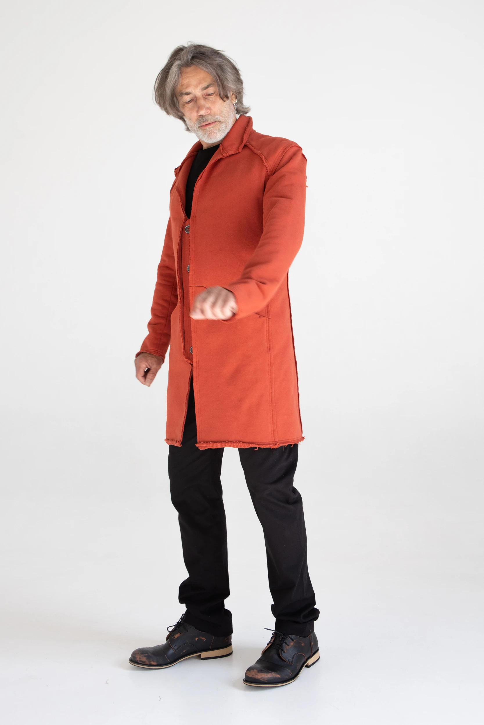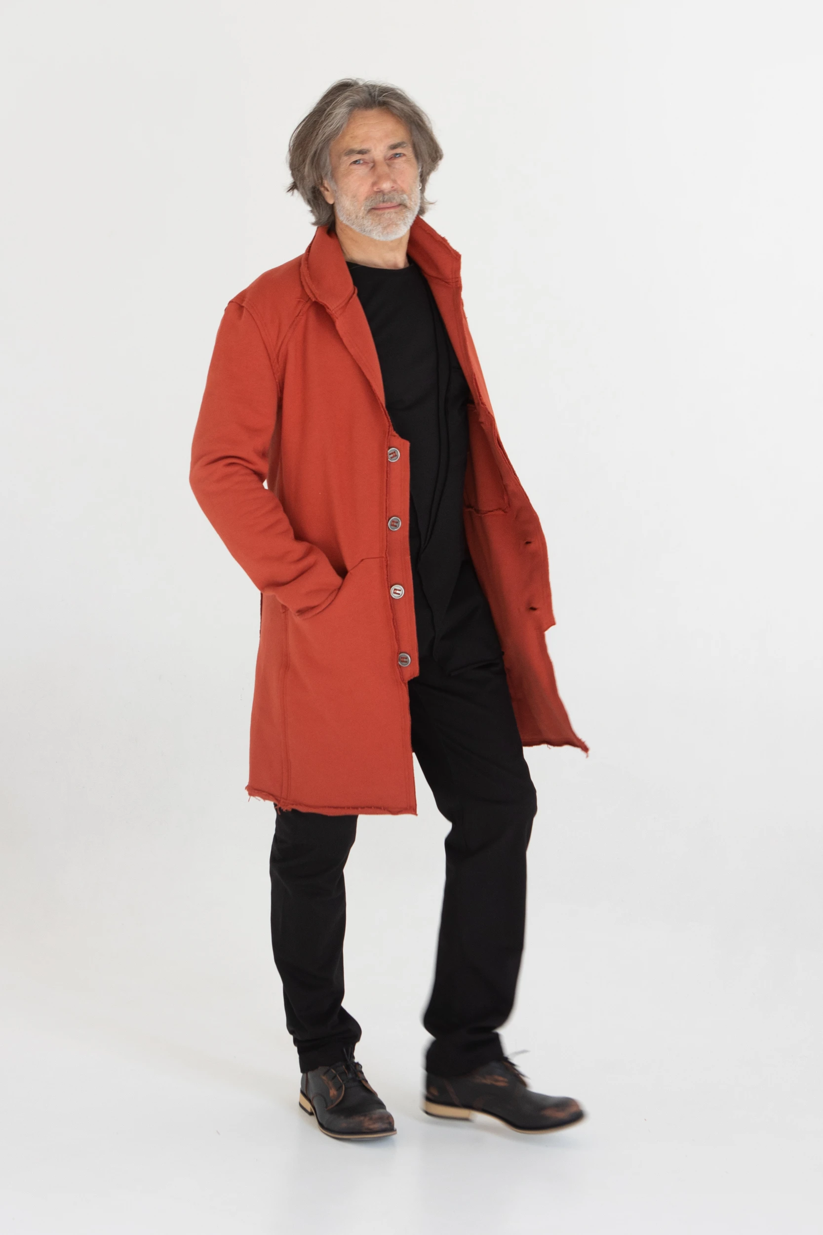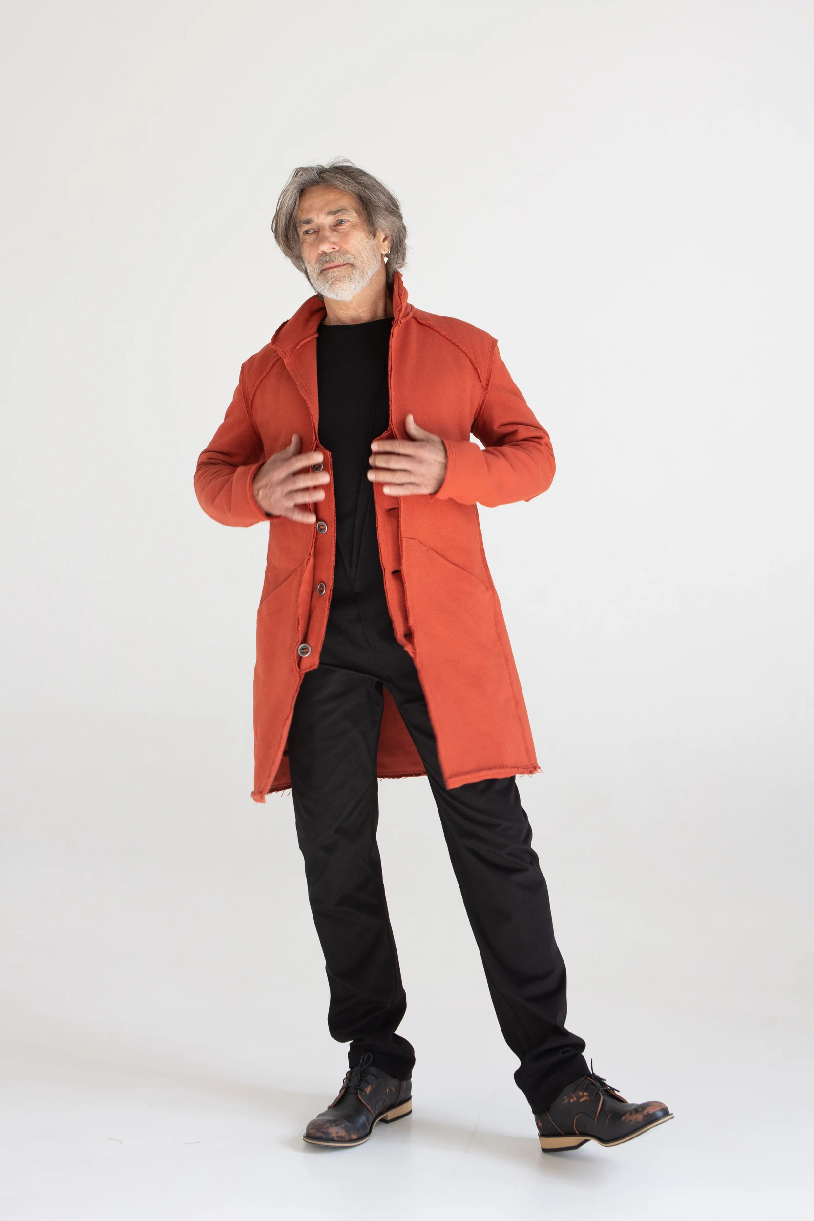Сюртук — он же удлинённый жакет — сшит из очень плотного хлопкового трикотажа, который прослужит не один год.