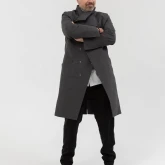 Длинное зимнее пальто на кнопках светло-серого цвета