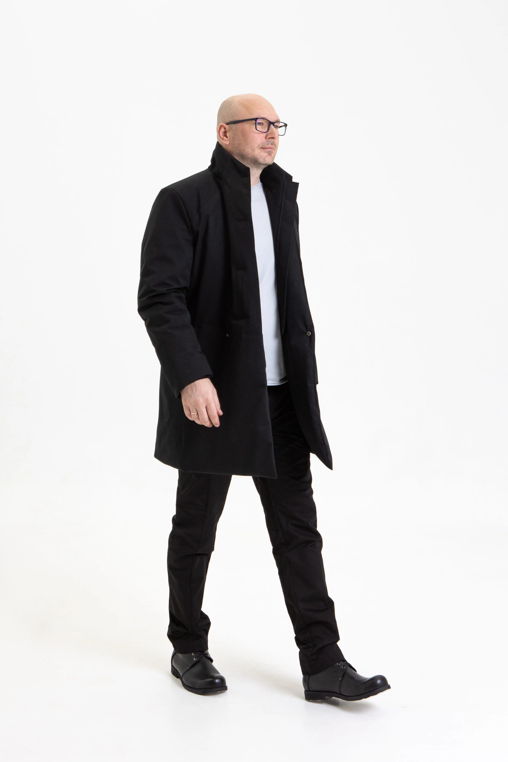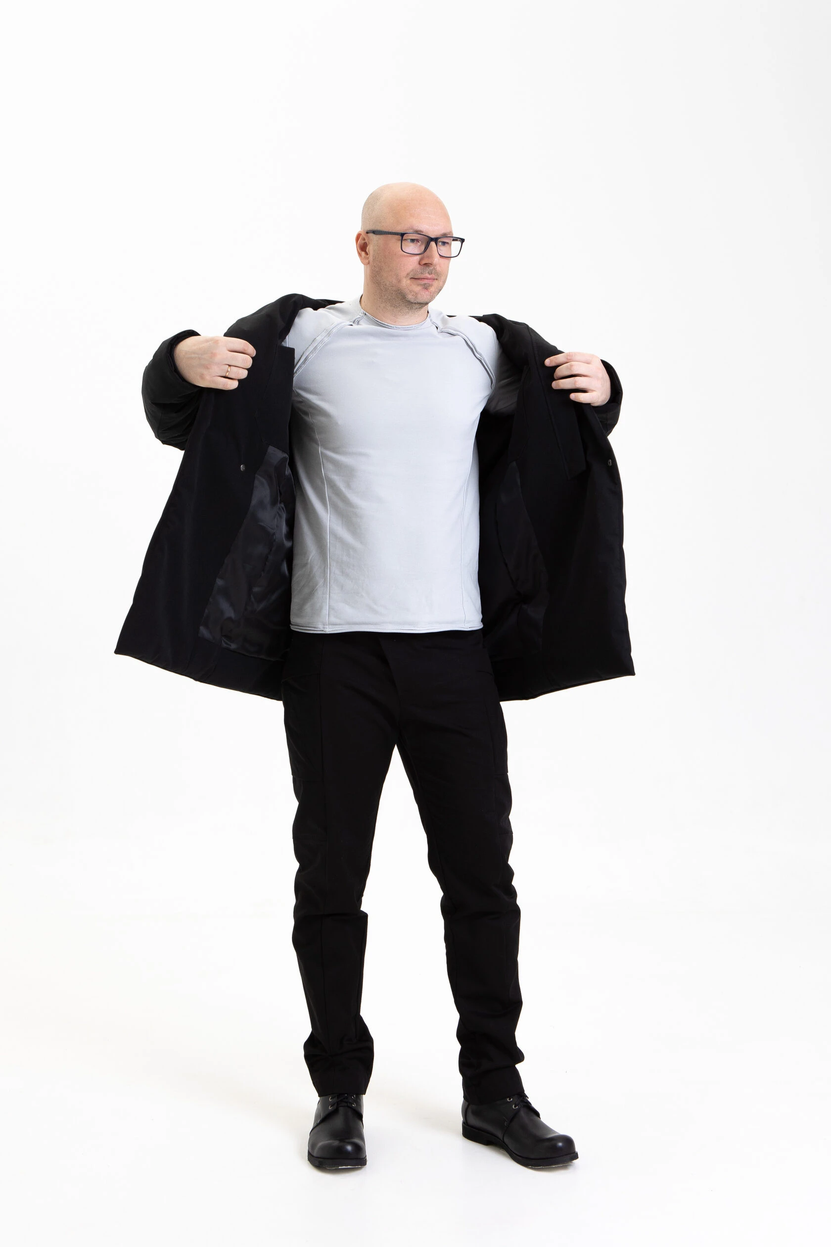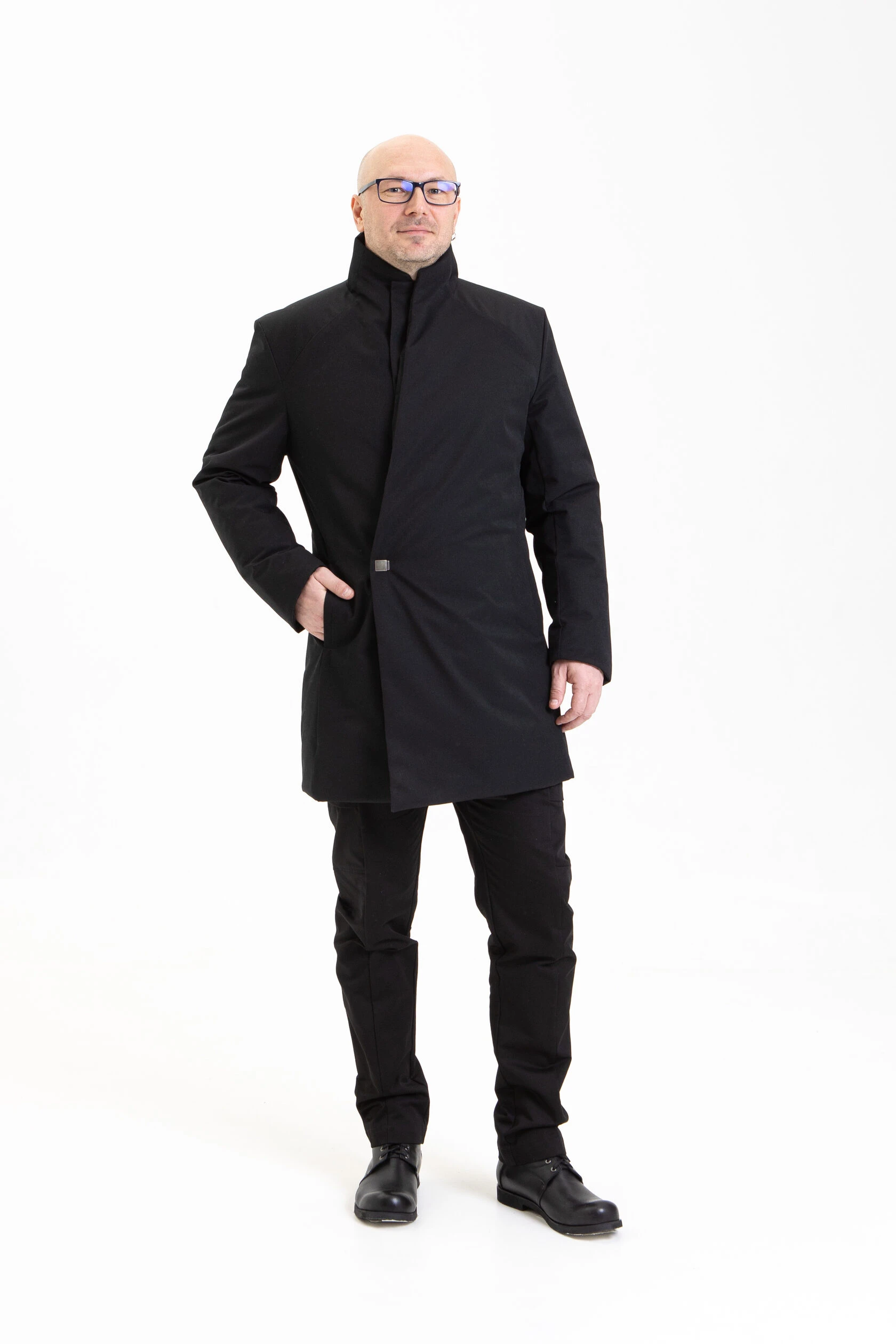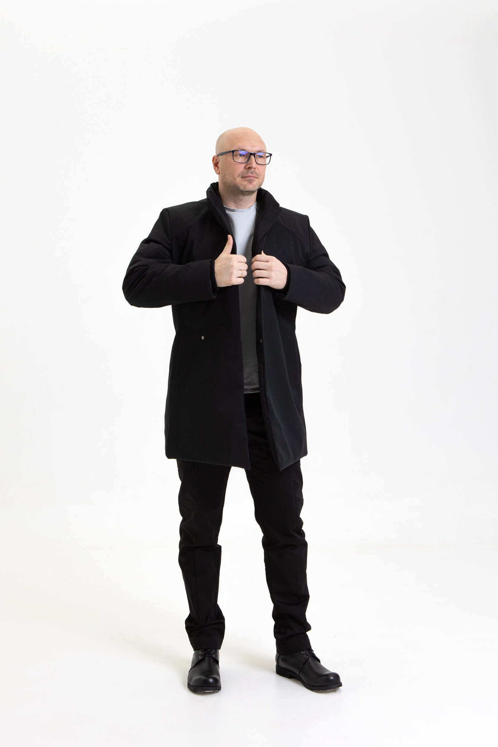 Полуприлегающий, подчёркнуто мужской силуэт. Минимум линий и декоративных элементов, но множество продуманных конструктивных решений.
