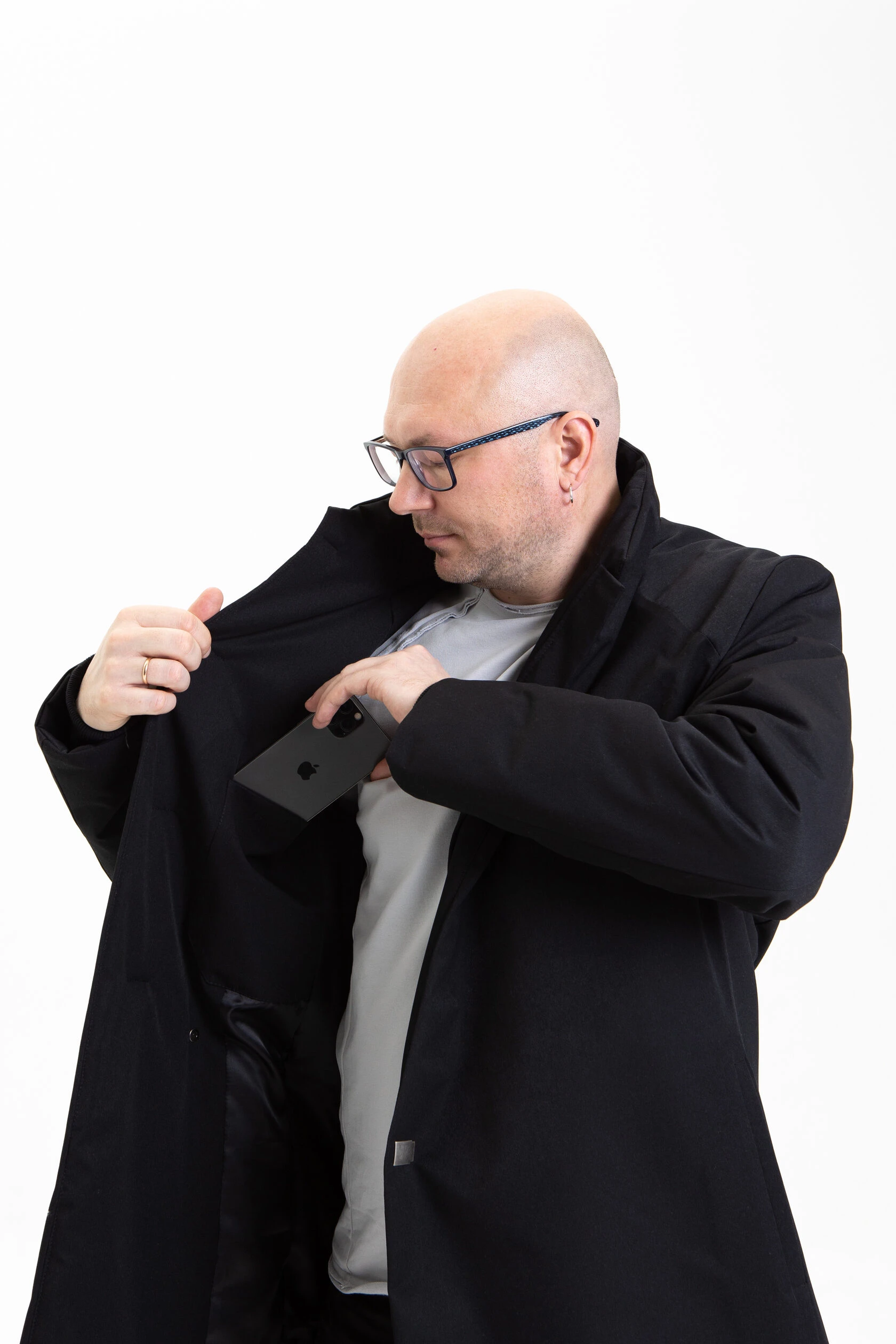 Плащ демисезонный на кнопках черный