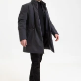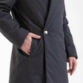 Пальто застёгивается на магниты. Магнитная планка слегка выглядывает из-под воротника, а затем прячется под полы пальто. На талии предусмотрена дополнительная застёжка на кнопку.