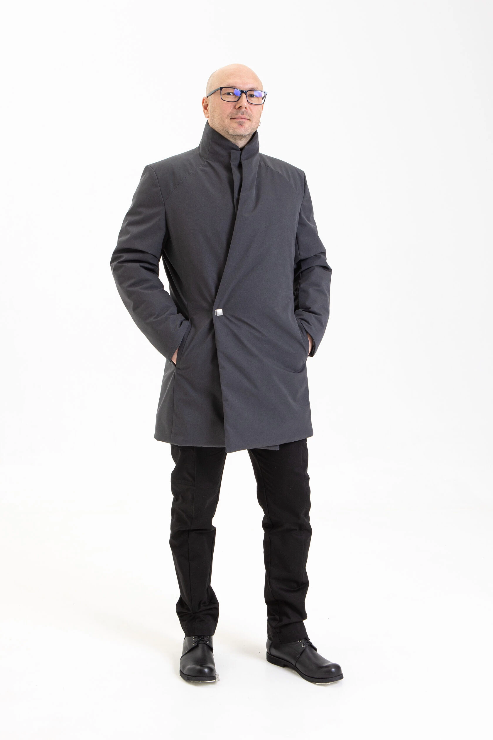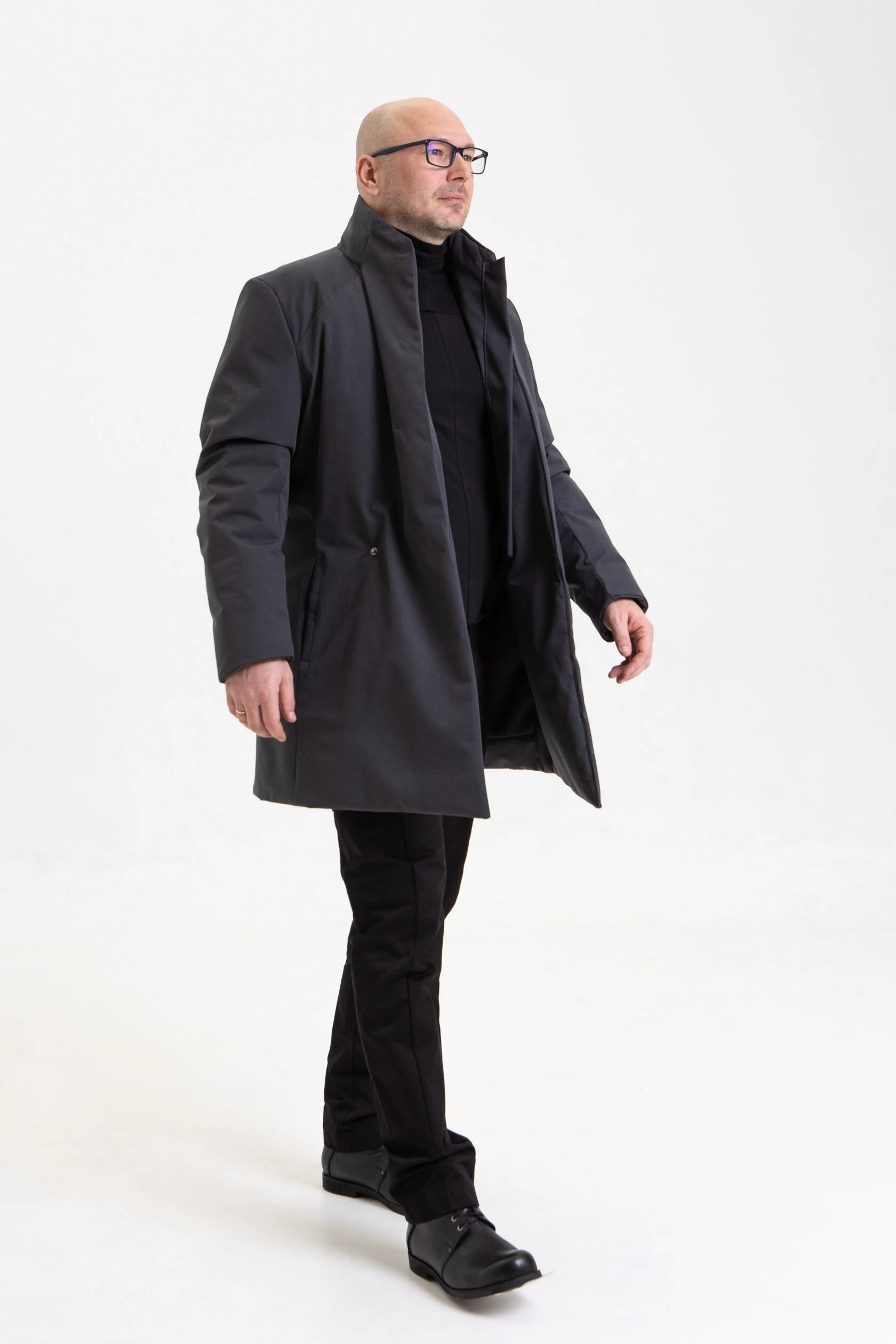 Полуприлегающий, подчёркнуто мужской силуэт. Минимум линий и декоративных элементов, но множество продуманных конструктивных решений.