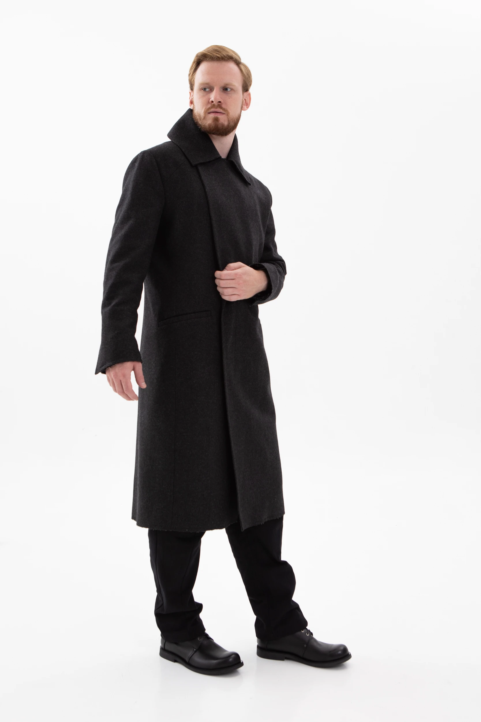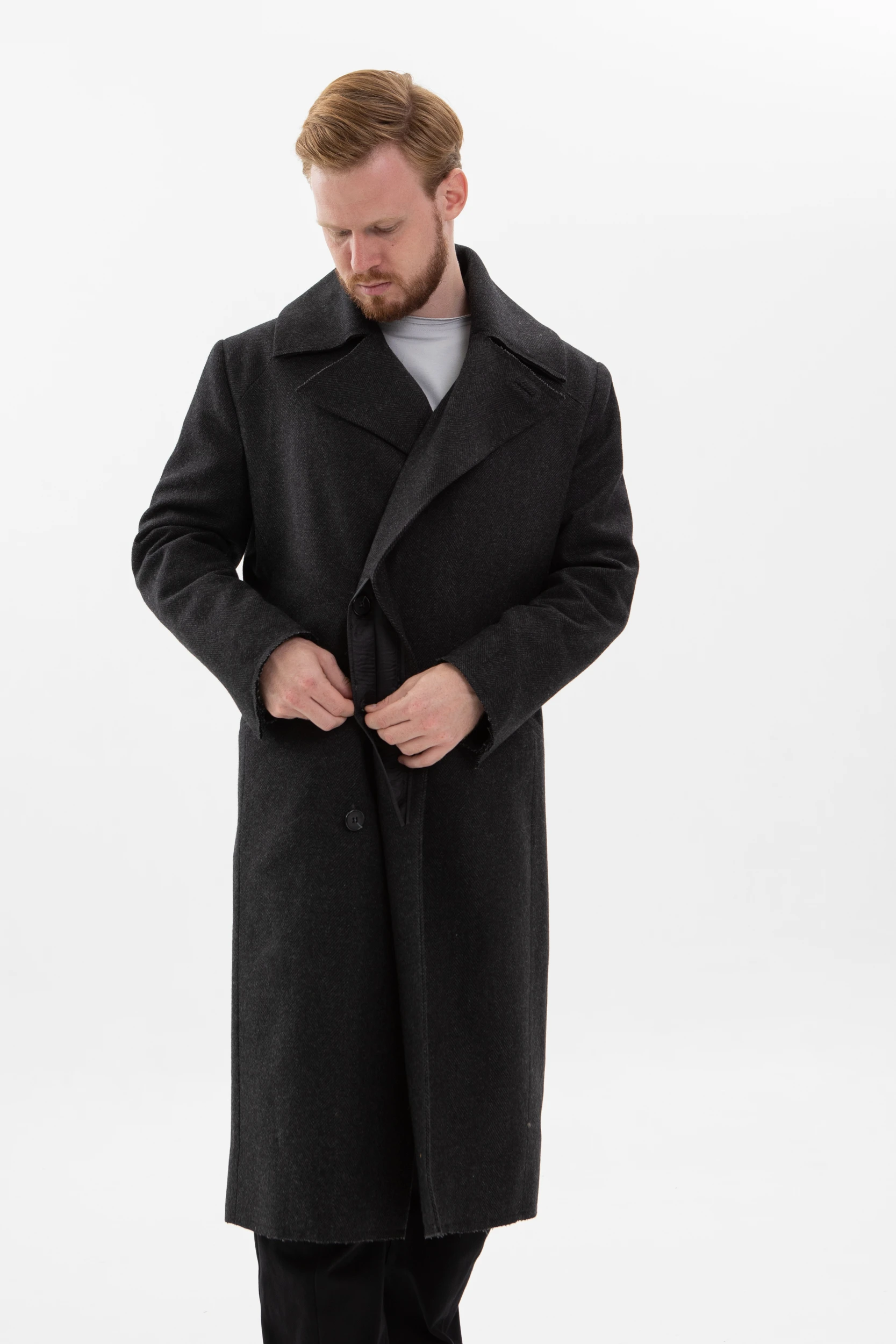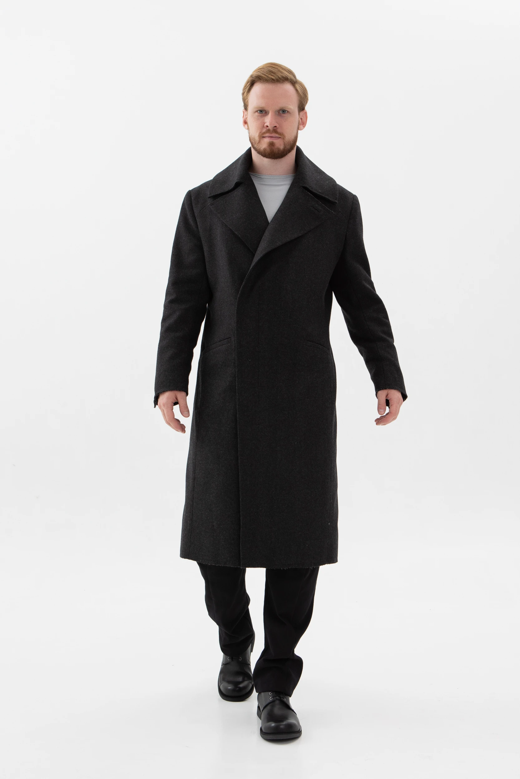 Классическое элегантное пальто с нескучными деталями. Необработанные края манжетов, низа пальто и лацканов воротника делают его не таким строгим и слегка хулиганским.