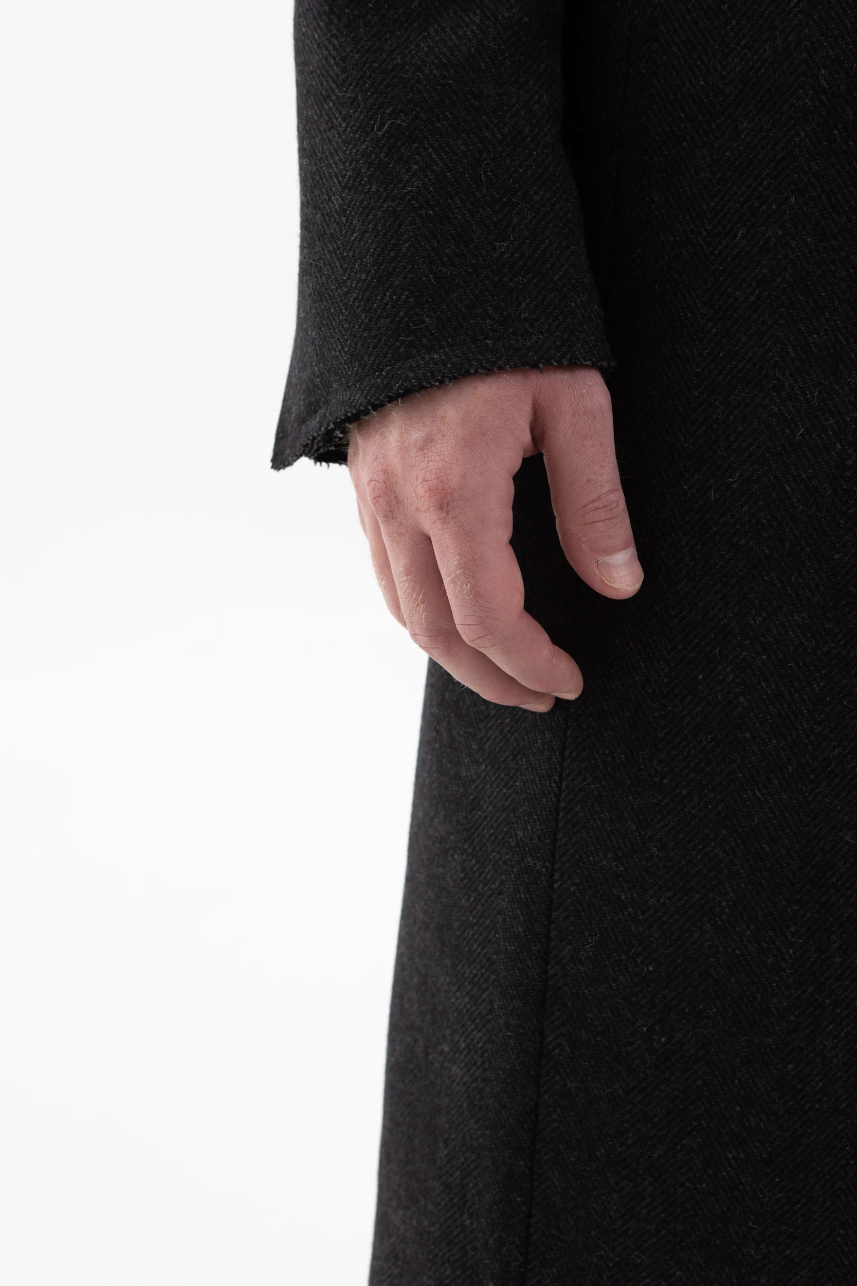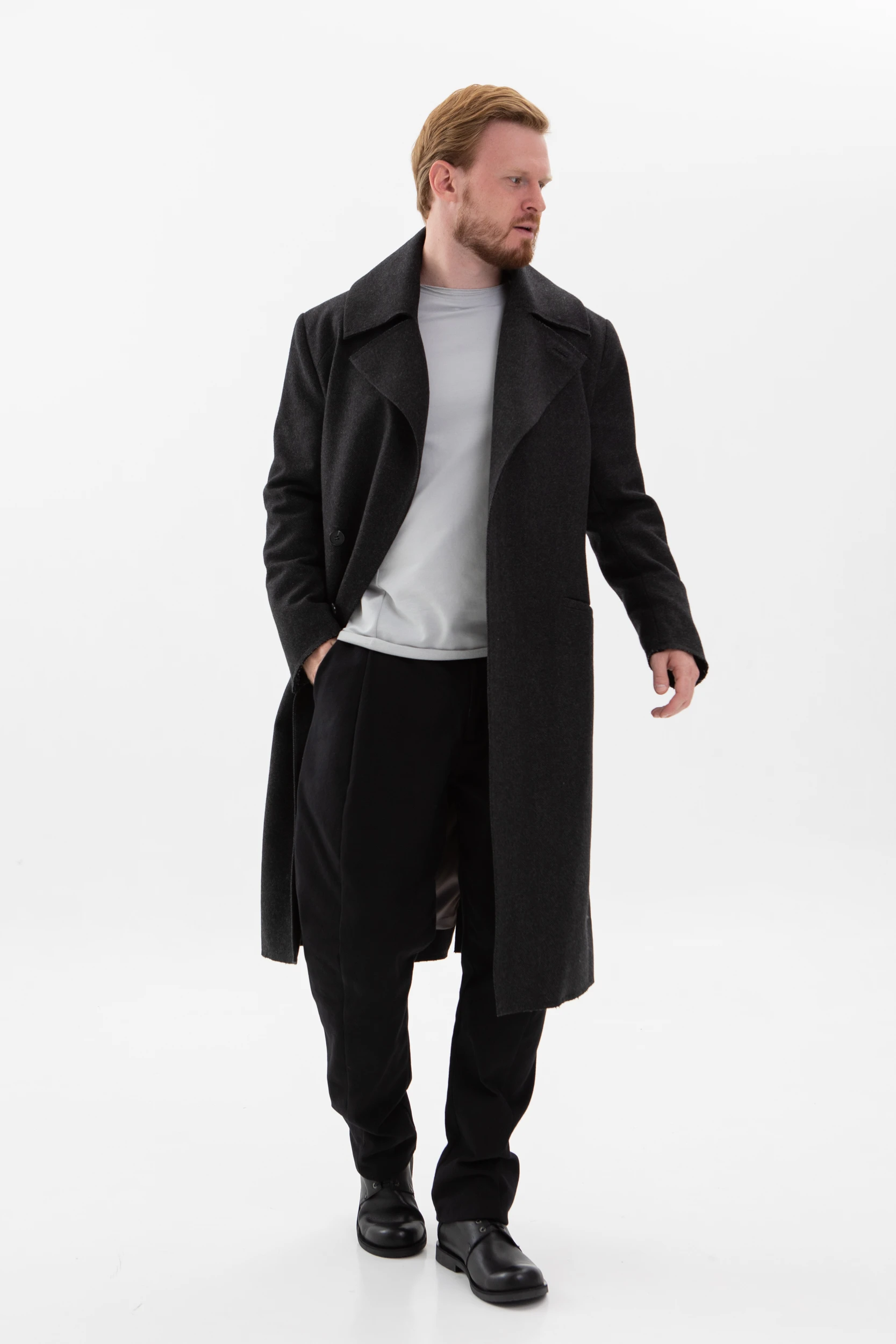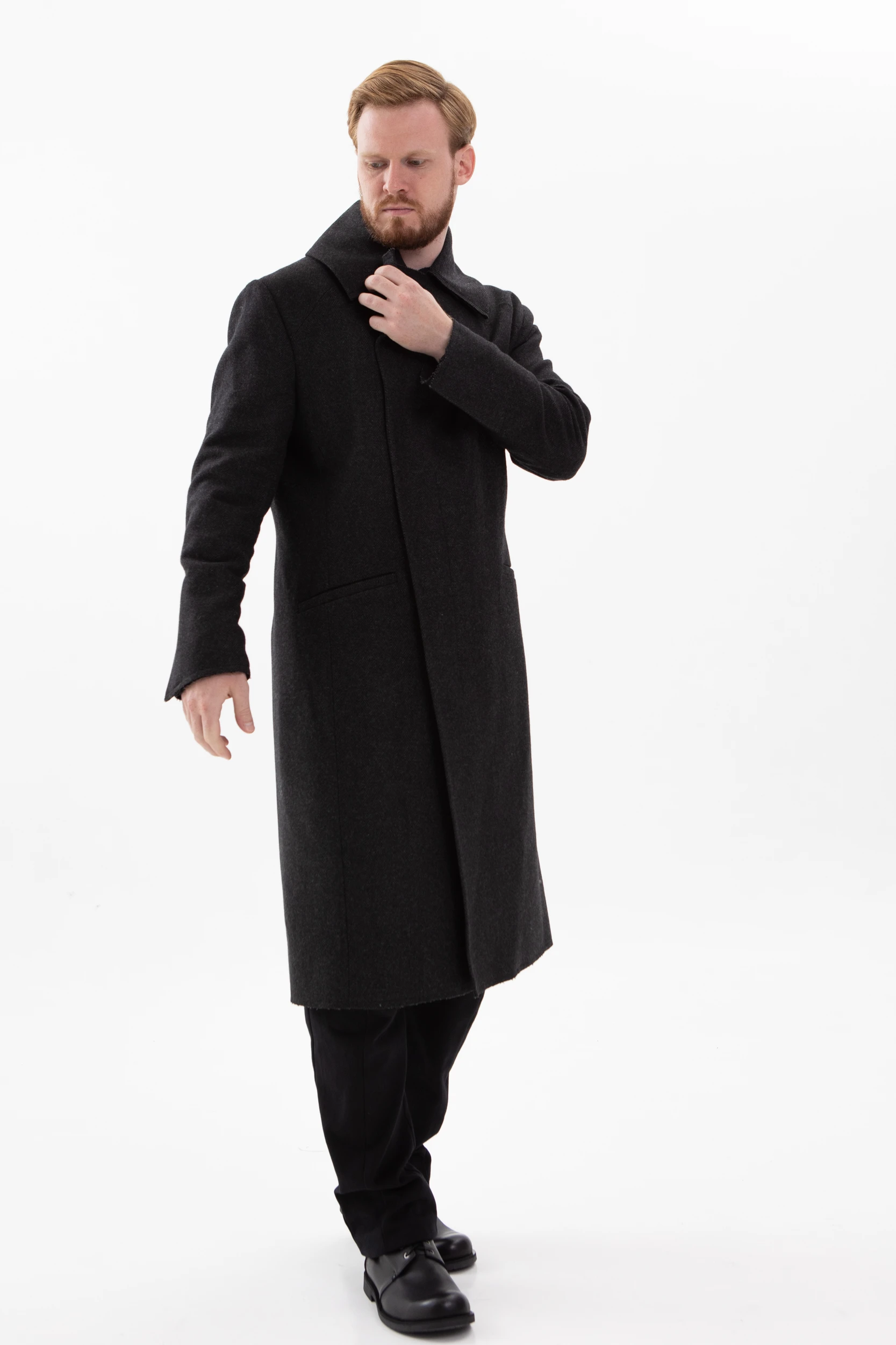 Классическое элегантное пальто с нескучными деталями. Необработанные края манжетов, низа пальто и лацканов воротника делают его не таким строгим и слегка хулиганским.